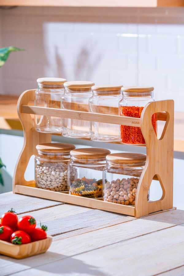 Acar Lnd-07587/4 Malıbu 7 Lı Bambu Standlı Baharatlık