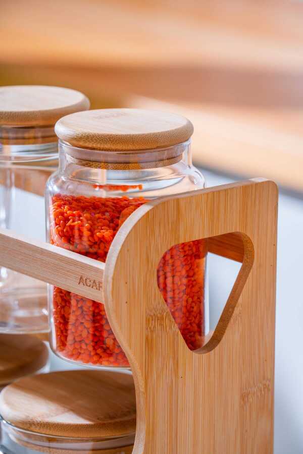 Acar 06121 Kayla Standlı Bambu 6 Lı Baharat Takımı